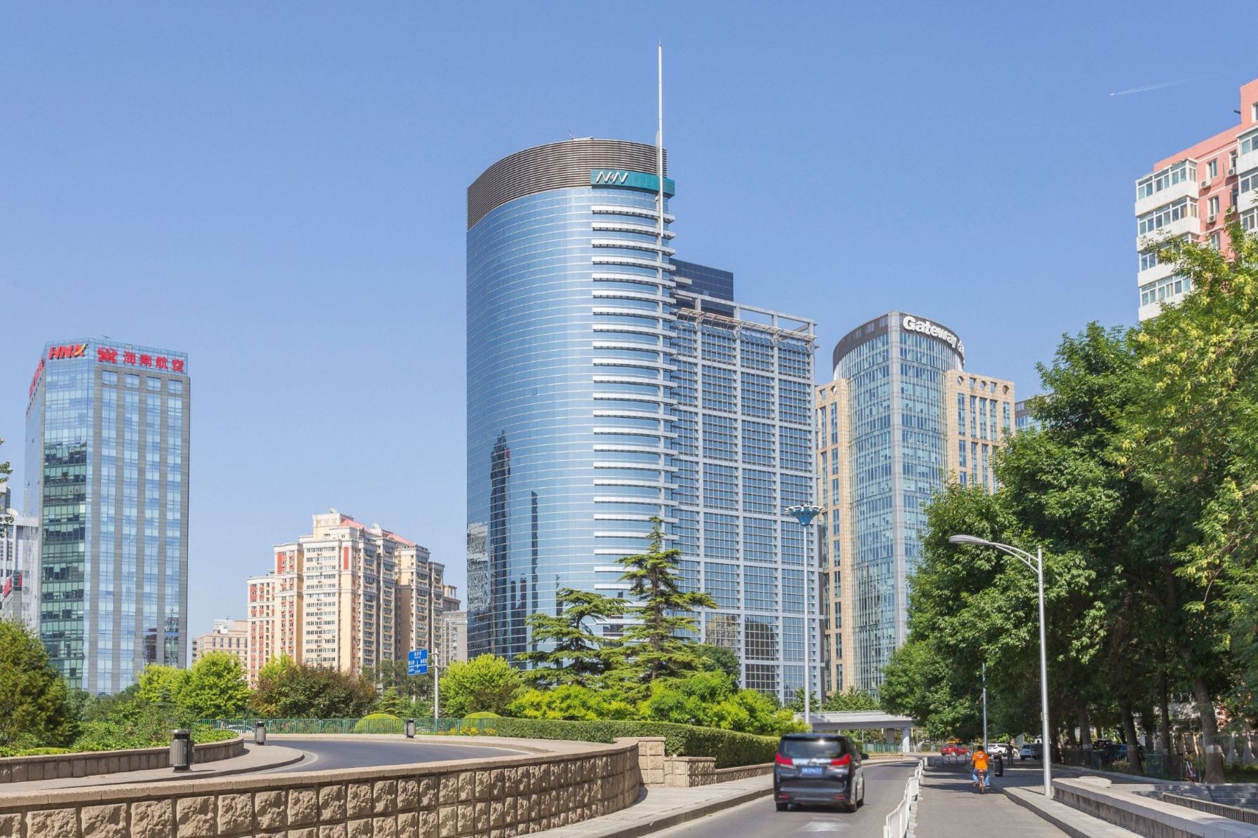 南银大厦位于北京市朝阳区东三环北路2号,周边高级酒店、购物中心及新型商业大厦林立,近临使馆区,南银大厦设计结合了高科技与环保意念,弧形幕墙配合流体力学理,与环境互相呼应。